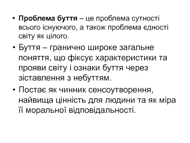 Слайд 5Проблема буття – це проблема сутності всього існуючого, а також