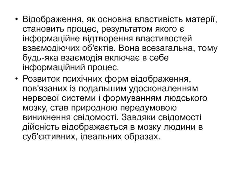 Слайд 15Відображення, як основна властивість матерії, становить процес, результатом якого є