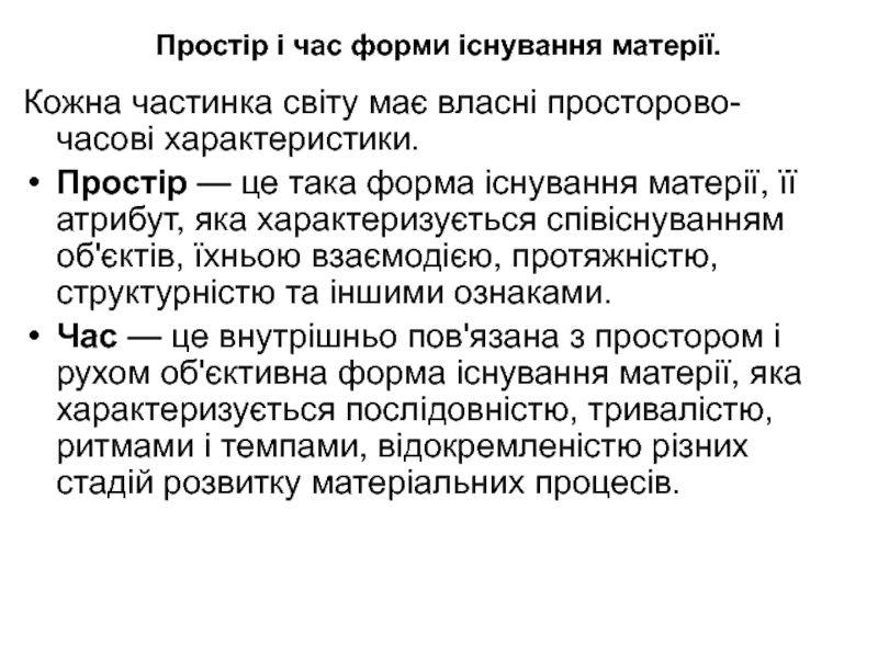 матерії: матерія рухається у просторі і часі. Простір і час,