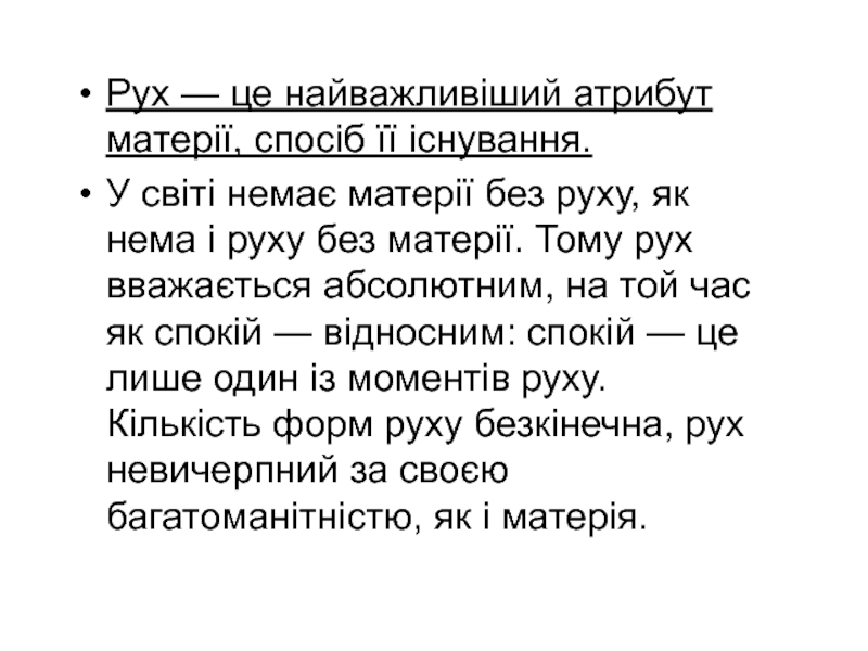 Слайд 11Рух — це найважливіший атрибут матерії, спосіб її існування.