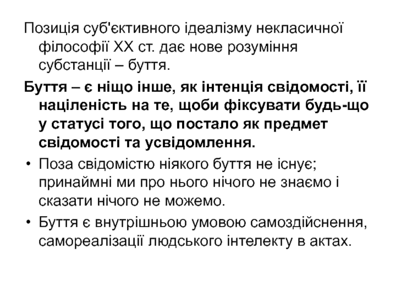 Слайд 9Позиція суб'єктивного ідеалізму некласичної філософії ХХ ст. дає нове розуміння