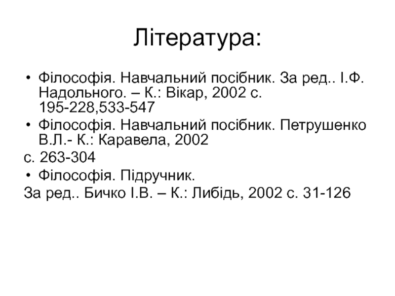 Філософія. Навчальний посібник. За ред.. І.Ф. Надольного. – К.: Вікар,