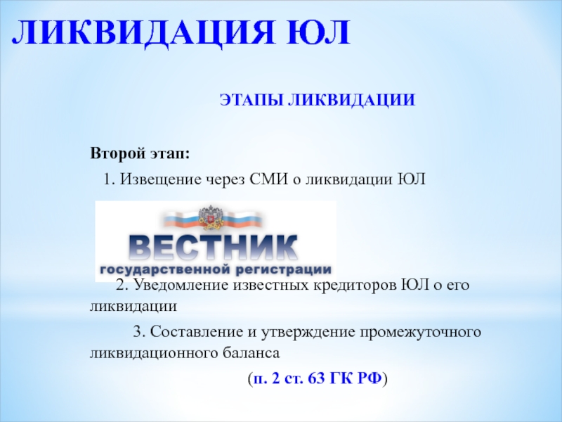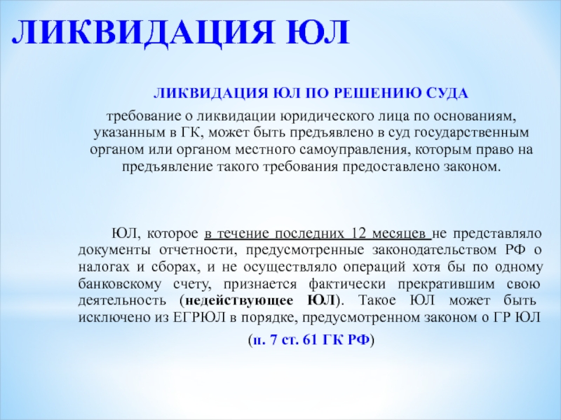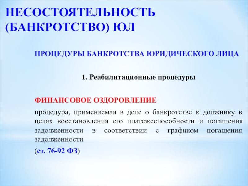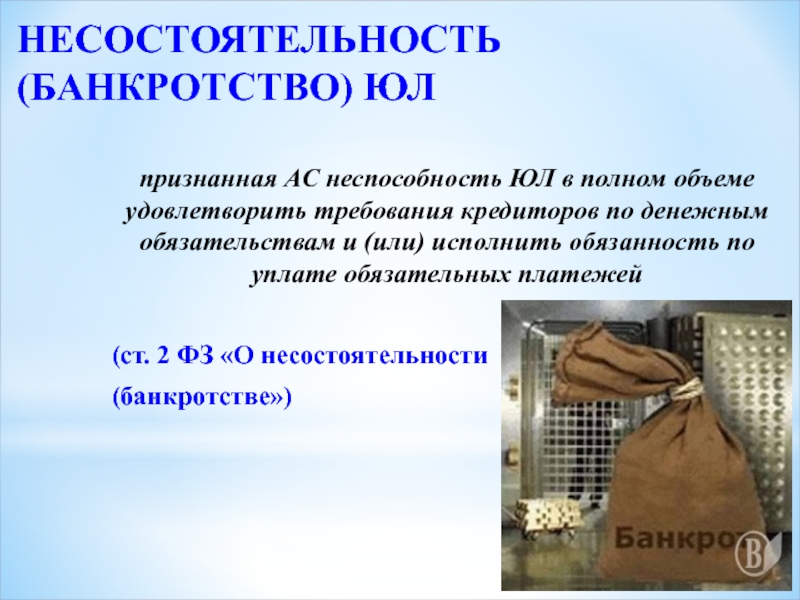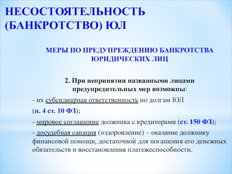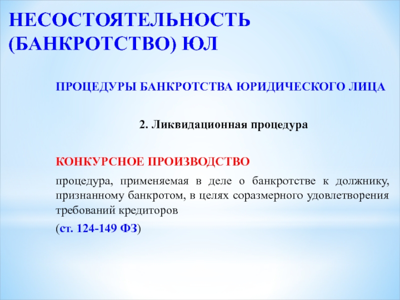 Слайд 149НЕСОСТОЯТЕЛЬНОСТЬ (БАНКРОТСТВО) ЮЛ