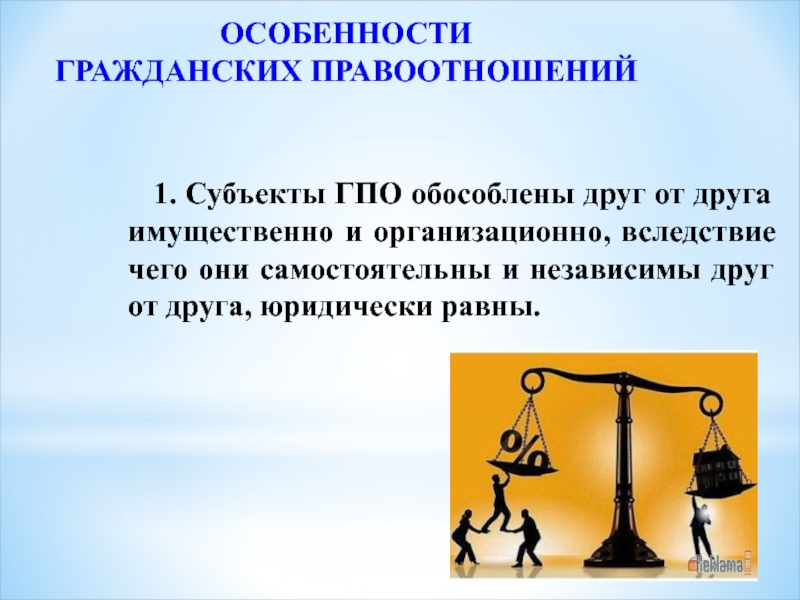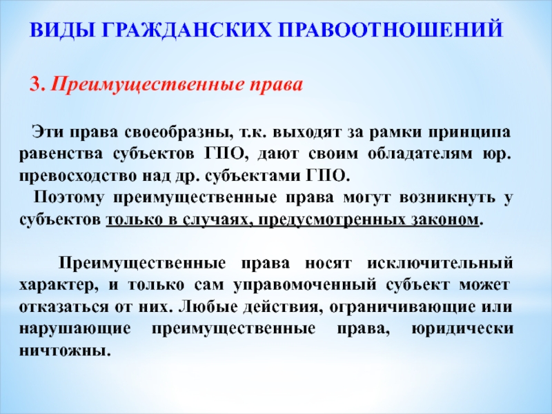 права своеобразны, т.к. выходят за рамки принципа равенства субъектов ГПО,