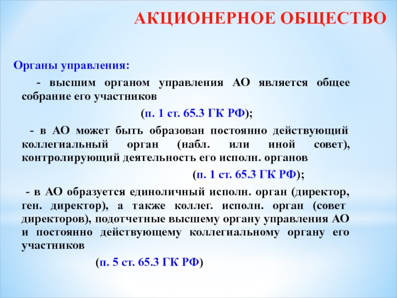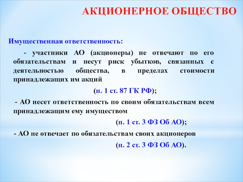 акционерного общества, в котором они являются акционерами (ст. 38 ФЗ «О приватизации государственного и муниципального имущества», Постановление ПРФ от 3.12.2004 г. № 738 «Об использовании специального права РФ в управлении ОАО»);
