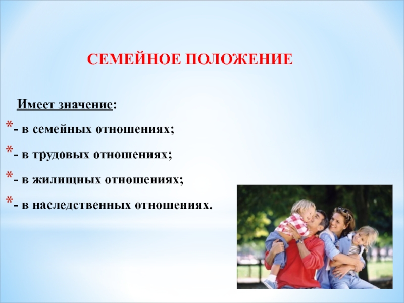 имущественных и л/неимущественных отношений, выражающаяся в наличии у них субъективных