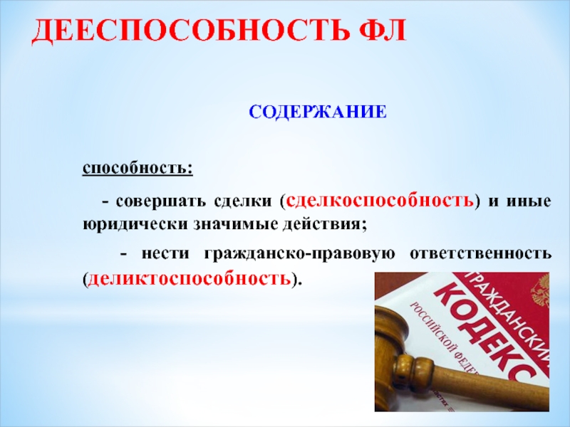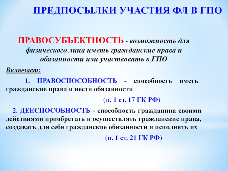 Слайд 17ПРАВОСПОСОБНОСТЬ ФЛ