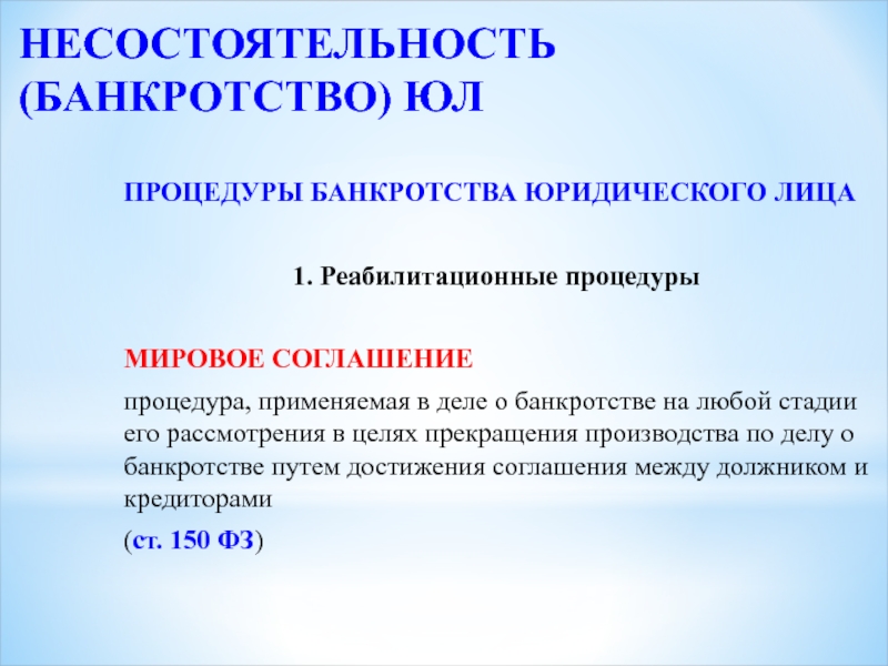 Слайд 150НЕСОСТОЯТЕЛЬНОСТЬ (БАНКРОТСТВО) ЮЛ