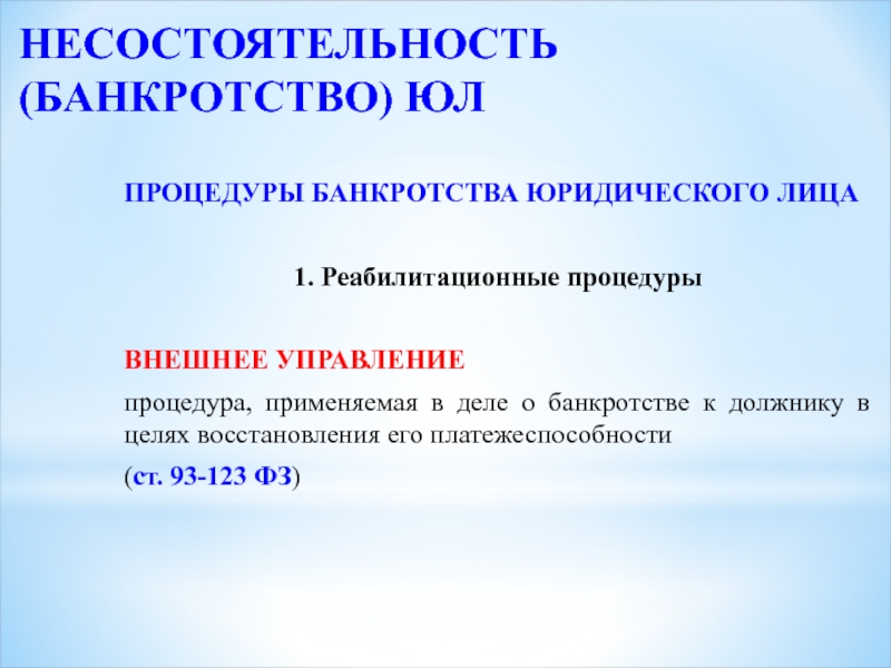 ПРОЦЕДУРЫ БАНКРОТСТВА ЮРИДИЧЕСКОГО ЛИЦА