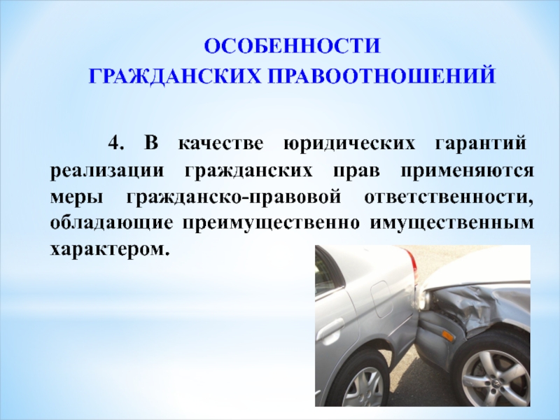 гражданских прав применяются меры гражданско-правовой ответственности, обладающие преимущественно имущественным характером.