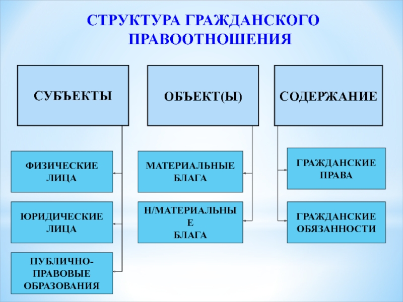 Слайд 4СТРУКТУРА ГРАЖДАНСКОГО ПРАВООТНОШЕНИЯ