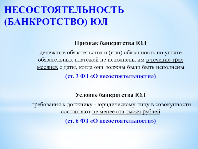 Слайд 153НЕСОСТОЯТЕЛЬНОСТЬ (БАНКРОТСТВО) ЮЛ