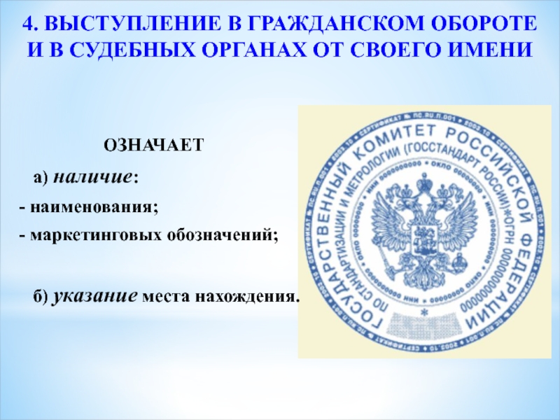 4. УЧАСТИЕ В ИСКЛЮЧИТЕЛЬНЫХ ПРАВООТНОШЕНИЯХ: