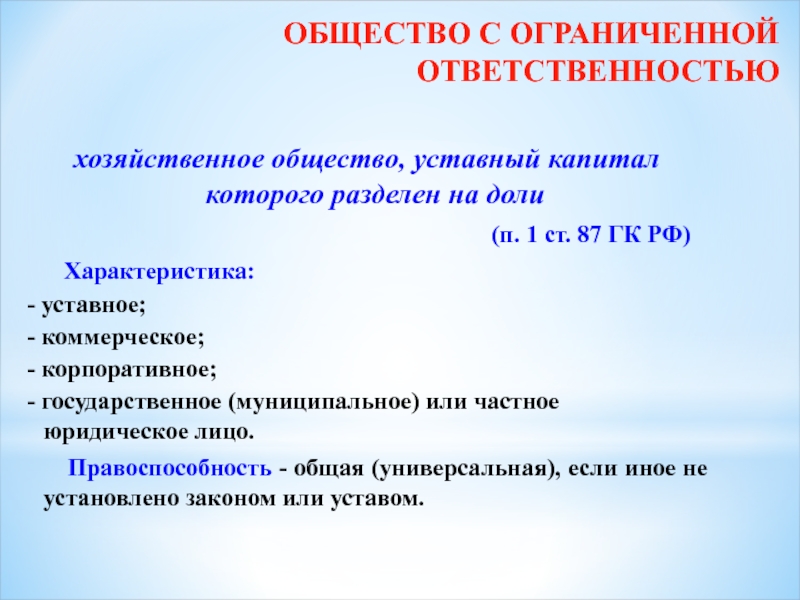 1. ПРАВОСПОСОБНОСТЬ - способность иметь гражданские права и нести обязанности