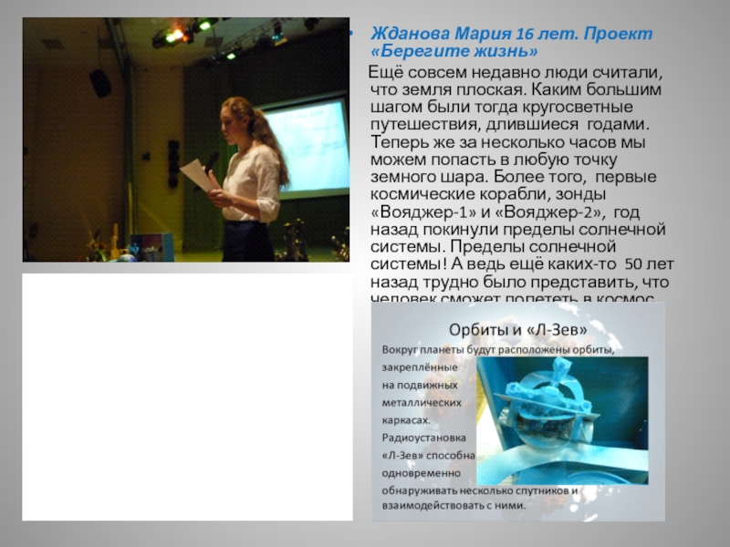 Слайд 7Жданова Мария 16 лет. Проект «Берегите жизнь»