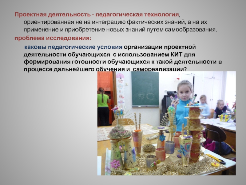 каковы педагогические условия организации проектной деятельности обучающихся с использованием КИТ для формирования готовности обучающихся к такой деятельности в процессе дальнейшего обучения и самореализации?
