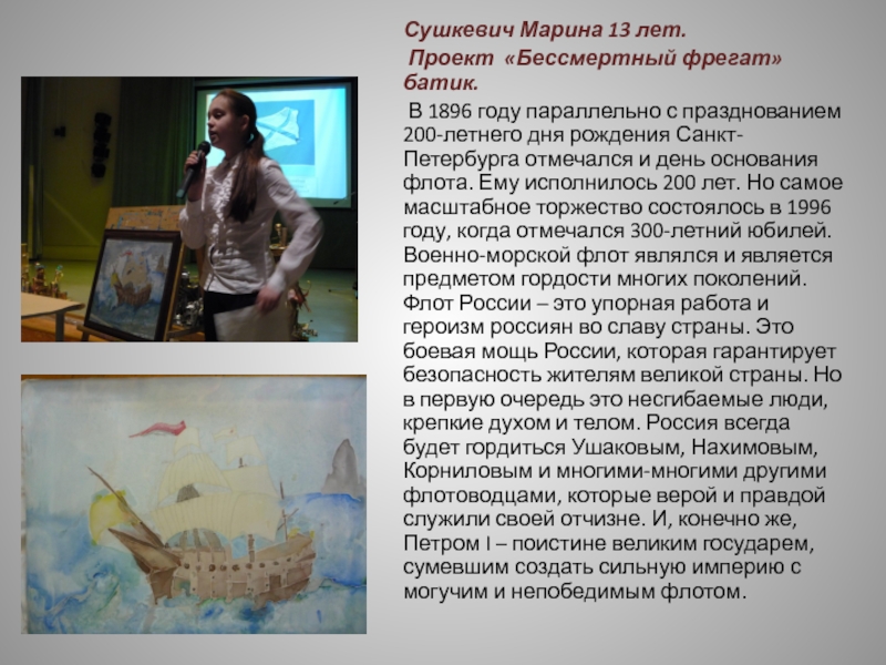 день основания флота. Ему исполнилось 200 лет. Но самое масштабное торжество состоялось в 1996 году, когда отмечался 300-летний юбилей. Военно-морской флот являлся и является предметом гордости многих поколений. Флот России – это упорная работа и героизм россиян во славу страны. Это боевая мощь России, которая гарантирует безопасность жителям великой страны. Но в первую очередь это несгибаемые люди, крепкие духом и телом. Россия всегда будет гордиться Ушаковым, Нахимовым, Корниловым и многими-многими другими флотоводцами, которые верой и правдой служили своей отчизне. И, конечно же, Петром I – поистине великим государем, сумевшим создать сильную империю с могучим и непобедимым флотом.