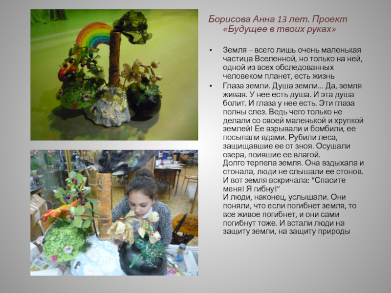 Слайд 5Борисова Анна 13 лет. Проект «Будущее в твоих руках»