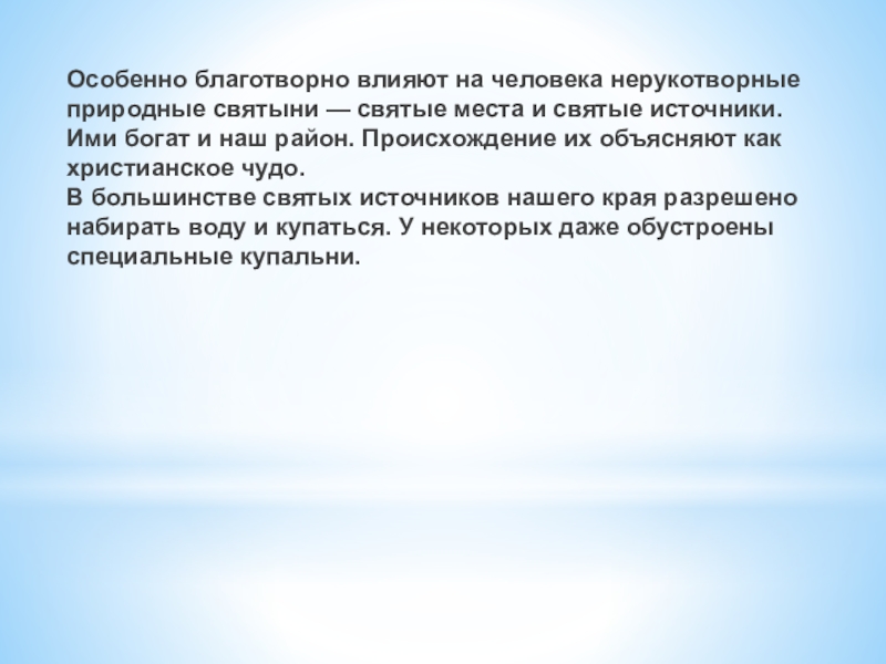 и святые источники. Ими богат и наш район. Происхождение их