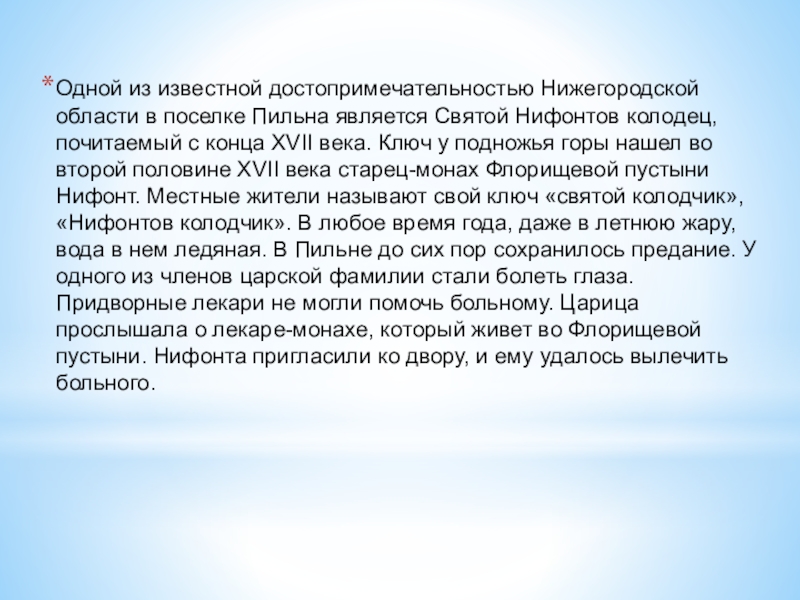 Слайд 11Одной из известной достопримечательностью Нижегородской области в поселке Пильна является