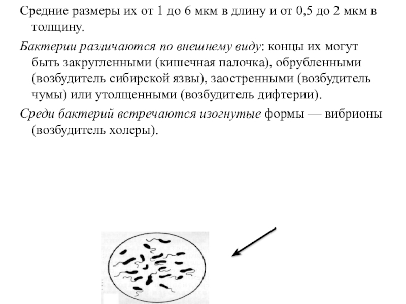 Слайд 25Средние размеры их от 1 до 6 мкм в длину