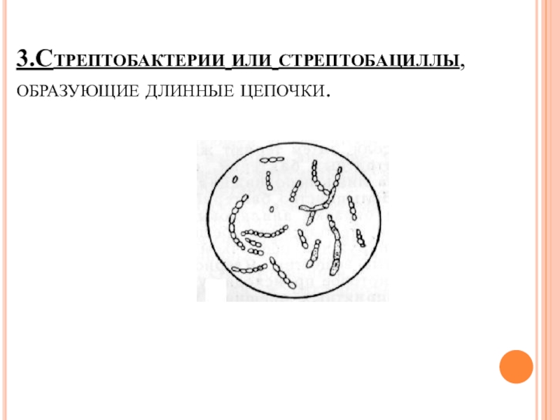 Слайд 243.Стрептобактерии или стрептобациллы, образующие длинные цепочки.