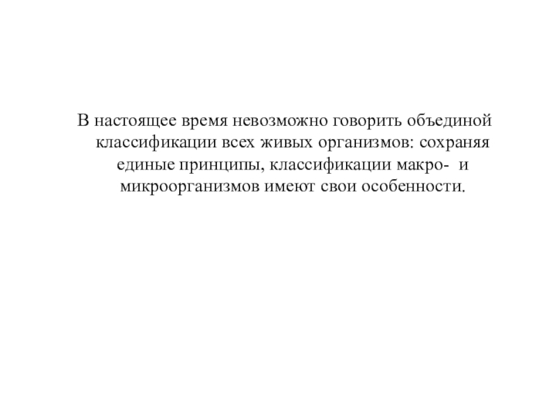 В настоящее время невозможно говорить объединой классификации всех живых организмов: