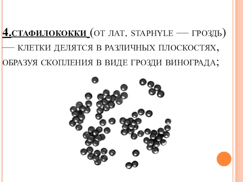 Слайд 184.стафилококки (от лат. staphyle — гроздь) — клетки делятся в