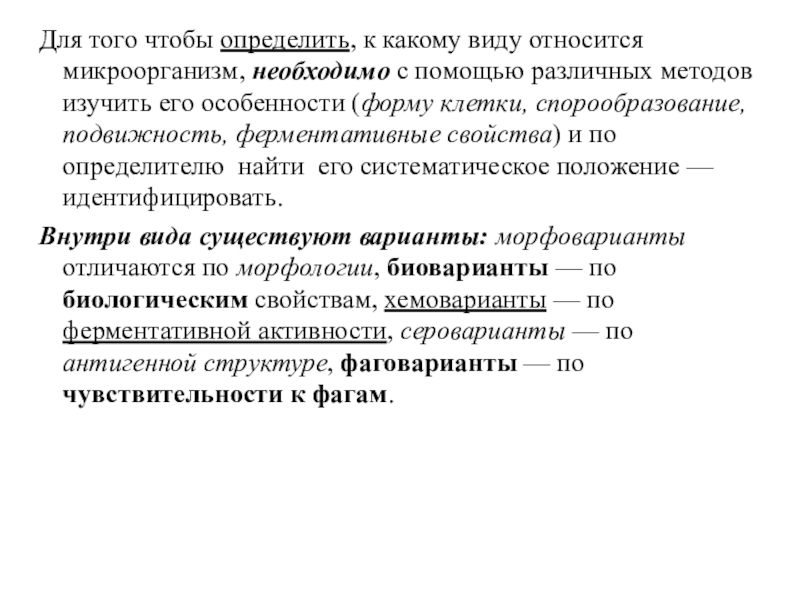 Слайд 10Для того чтобы определить, к какому виду относится микроорганизм, необходимо