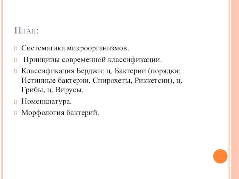 Истинные бактерии, Спирохеты, Риккетсии), ц. Грибы, ц. Вирусы.