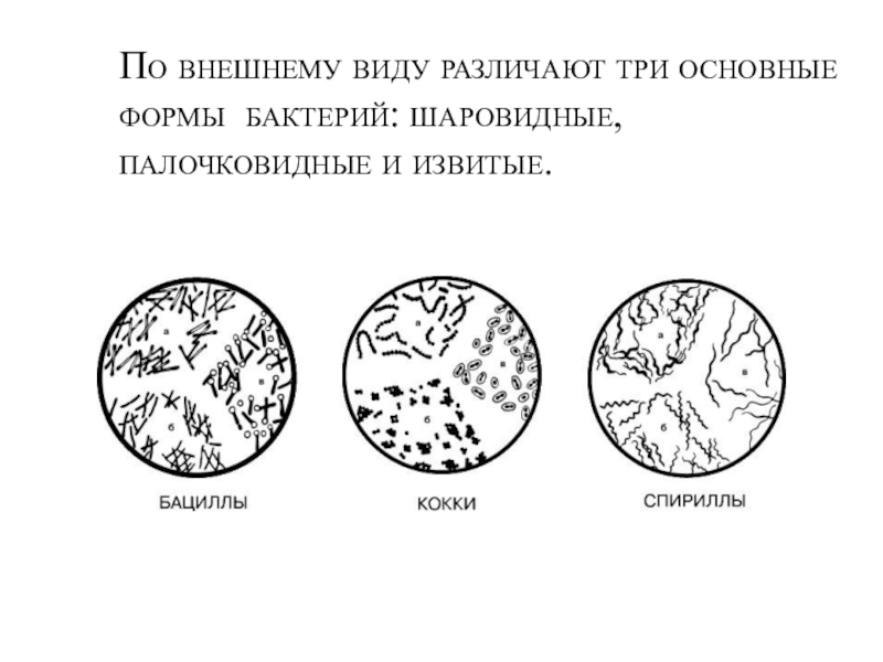 По внешнему виду различают три основные формы бактерий: шаровидные, палочковидные