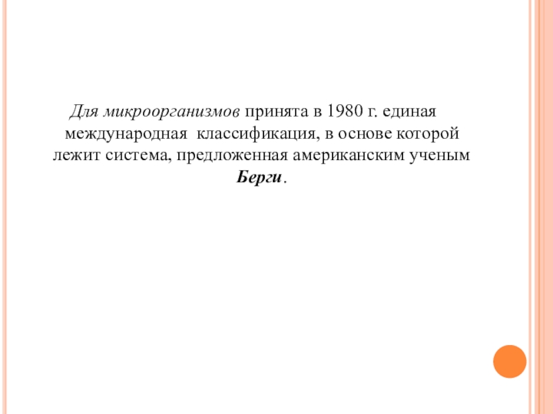 Слайд 9Для микроорганизмов принята в 1980 г. единая международная классификация, в