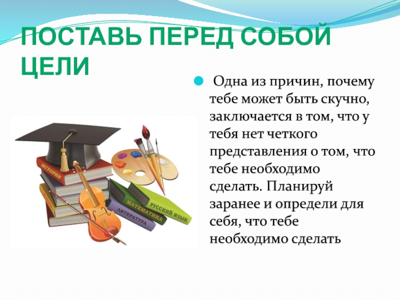 о том, что тебе необходимо сделать. Планируй заранее и определи для себя, что тебе необходимо сделать