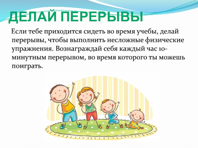 делай перерывы, чтобы выполнить несложные физические упражнения. Вознаграждай себя каждый