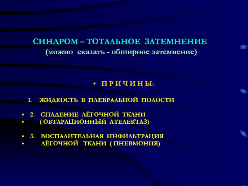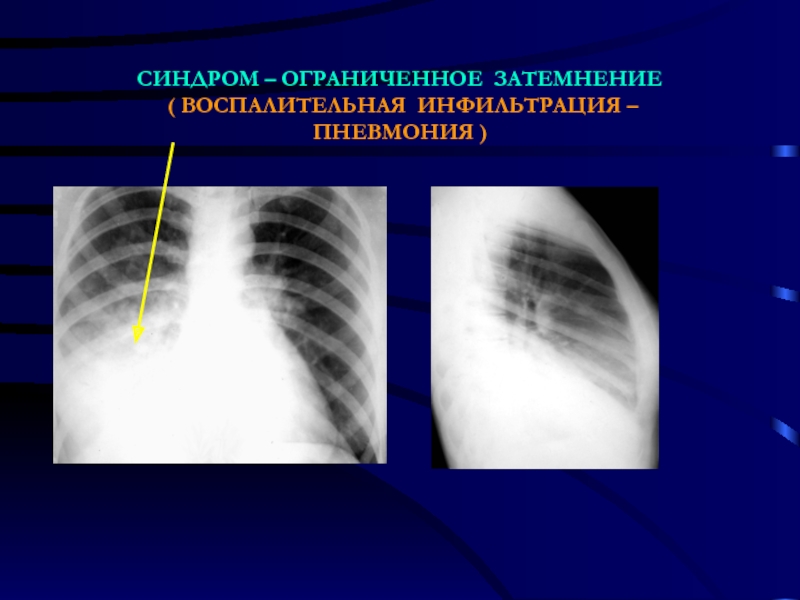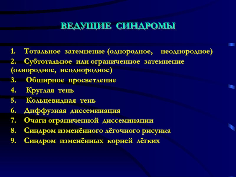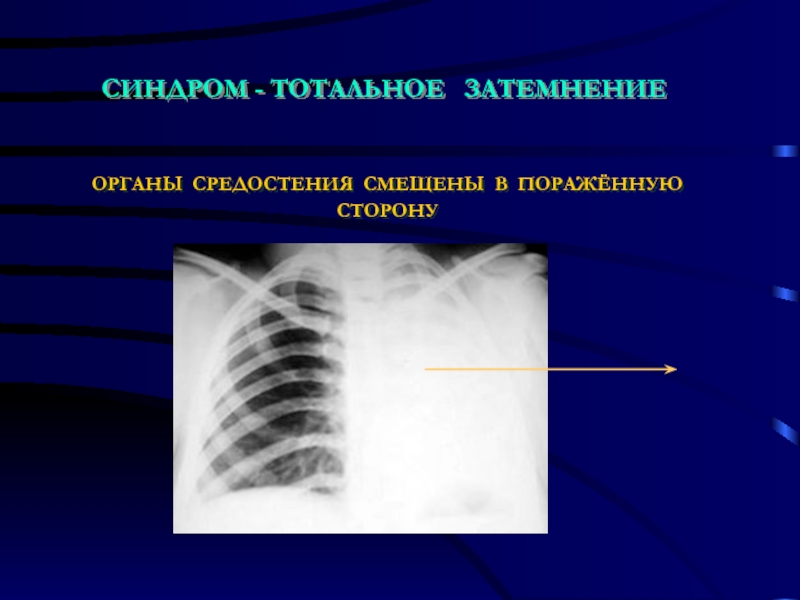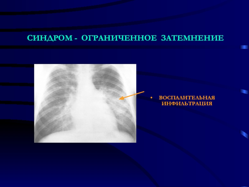 Слайд 13ВЕДУЩИЙ СИНДРОМ - ОБШИРНОЕ ЗАТЕМНЕНИЕ