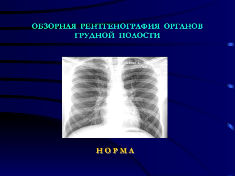 Слайд 3ОБЗОРНАЯ РЕНТГЕНОГРАФИЯ ОРГАНОВ ГРУДНОЙ ПОЛОСТИ