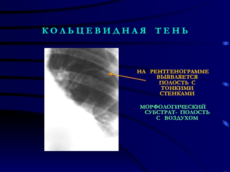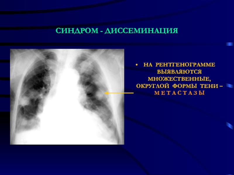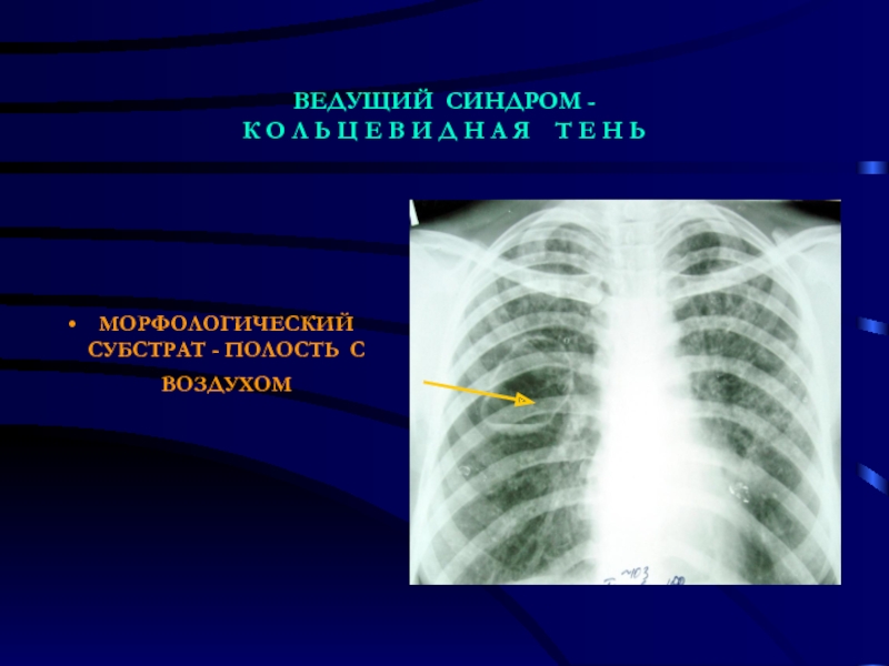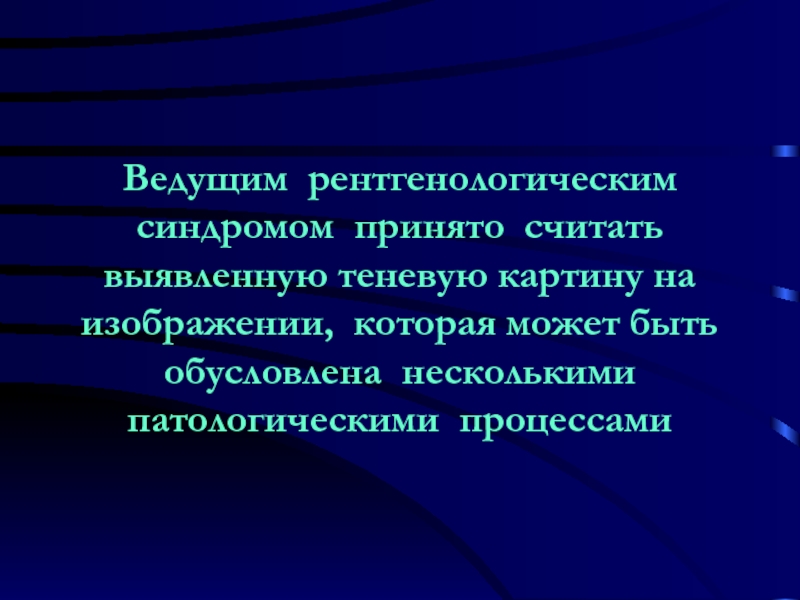 Слайд 8Ведущим рентгенологическим синдромом принято считать выявленную теневую картину на изображении,