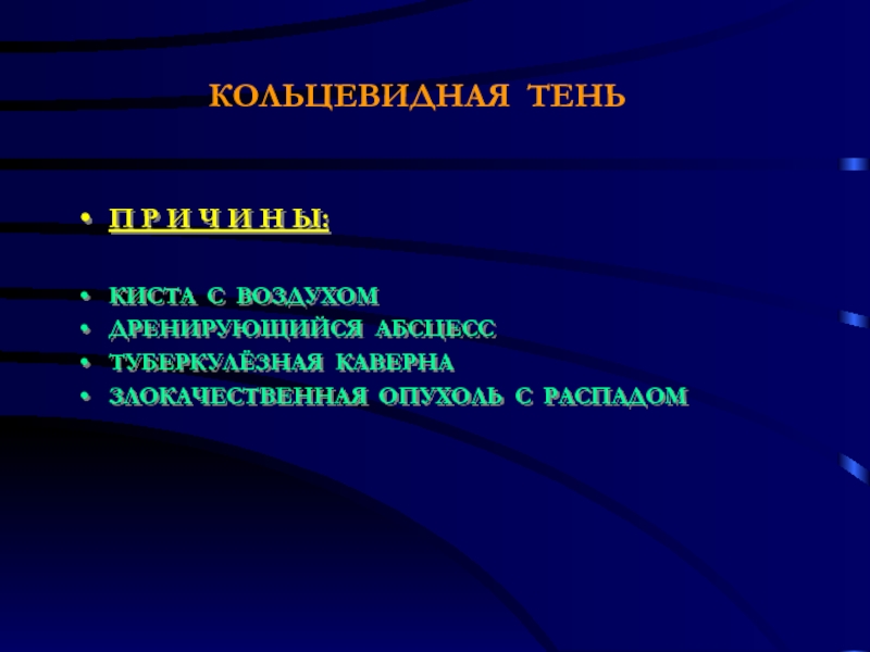 принято считать патологический процесс, обуславливающий выявленную теневую