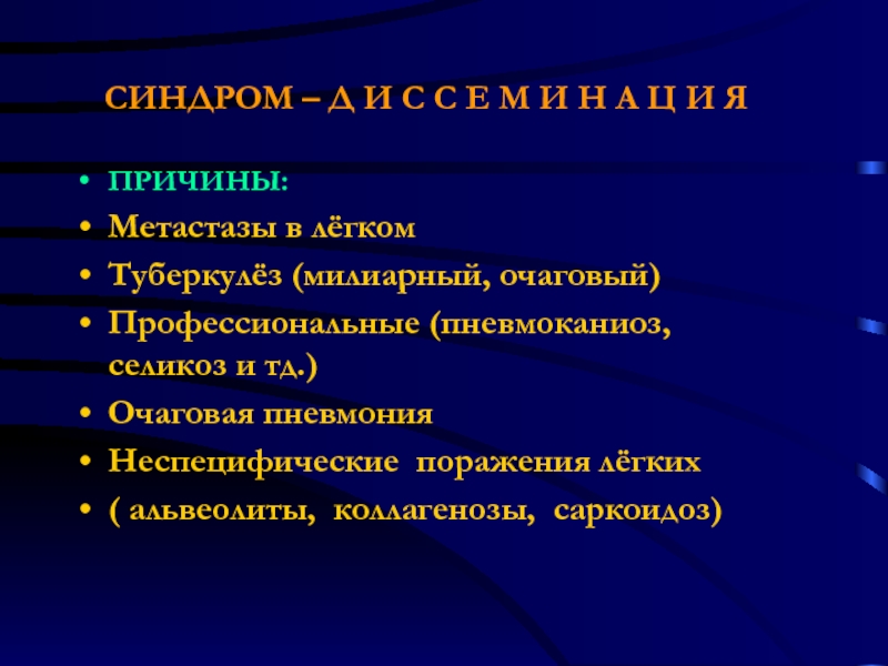 Слайд 33СИНДРОМ - ДИССЕМИНАЦИЯ