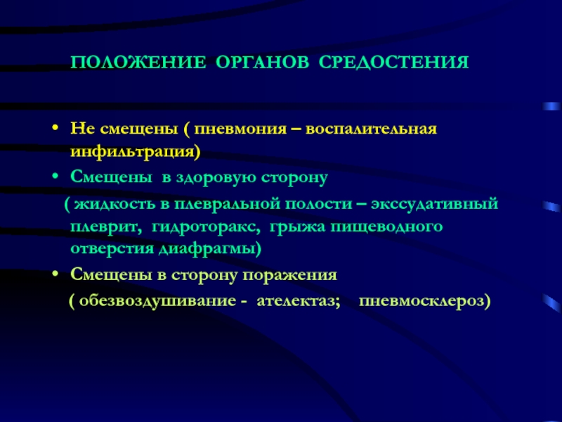 ОРГАНЫ СРЕДОСТЕНИЯ СМЕЩЕНЫ В ПОРАЖЁННУЮ СТОРОНУ