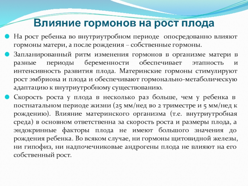Слайд 6Влияние гормонов на рост плода