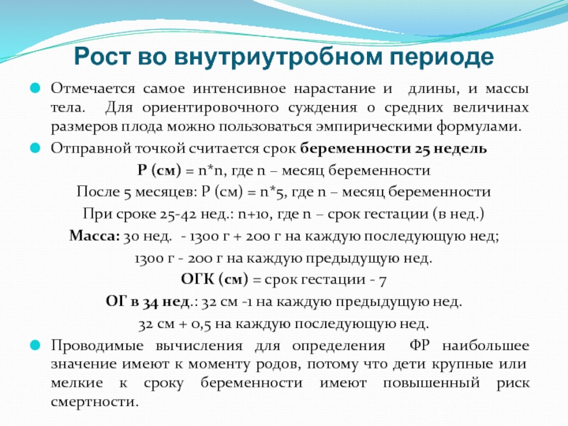 Слайд 15Рост во внутриутробном периоде