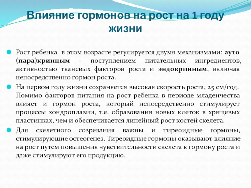 Слайд 7Влияние гормонов на рост на 1 году жизни