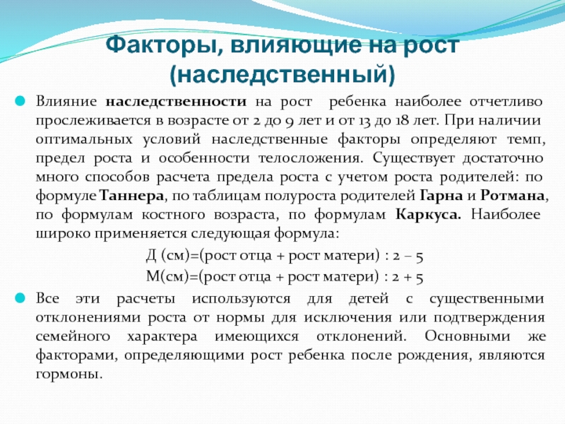 Слайд 5Факторы, влияющие на рост (наследственный)