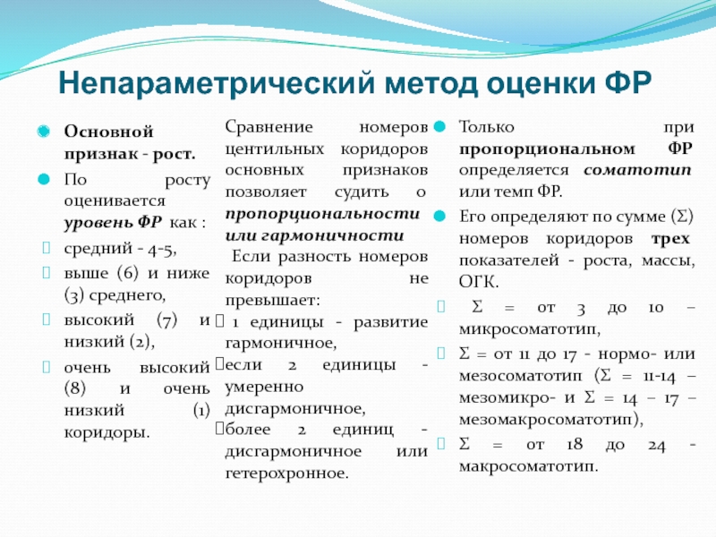 Только при пропорциональном ФР определяется соматотип или темп ФР.