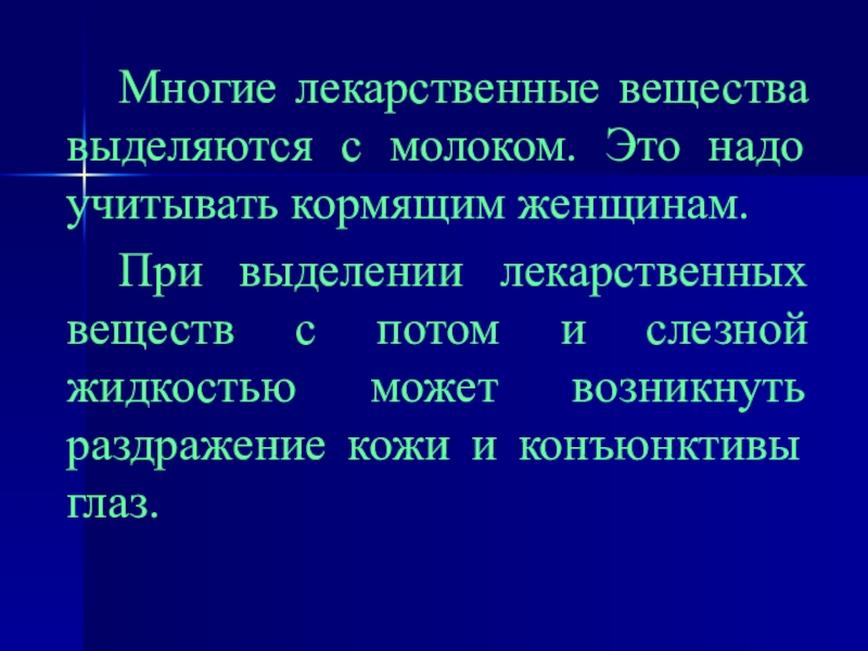 Слайд 28Многие лекарственные вещества выделяются с молоком. Это надо учитывать кормящим