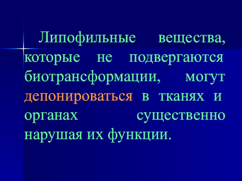 Слайд 17Липофильные вещества, которые не подвергаются биотрансформации, могут депонироваться в тканях