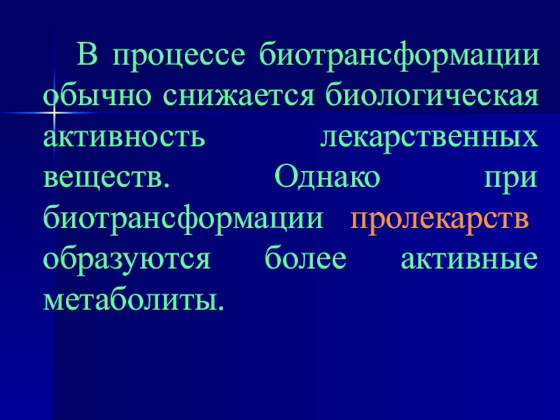 Слайд 15В процессе биотрансформации обычно снижается биологическая активность лекарственных веществ. Однако