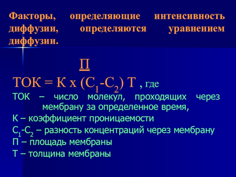 Слайд 5Факторы, определяющие интенсивность диффузии, определяются уравнением диффузии.