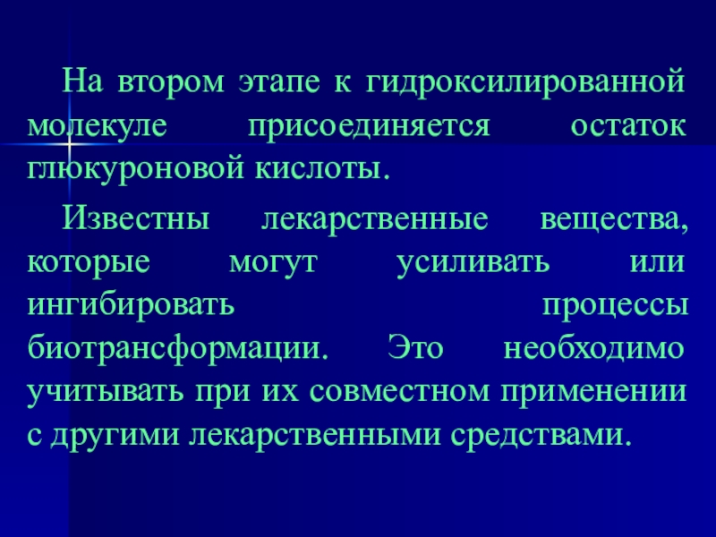Слайд 20На втором этапе к гидроксилированной молекуле присоединяется остаток глюкуроновой кислоты.